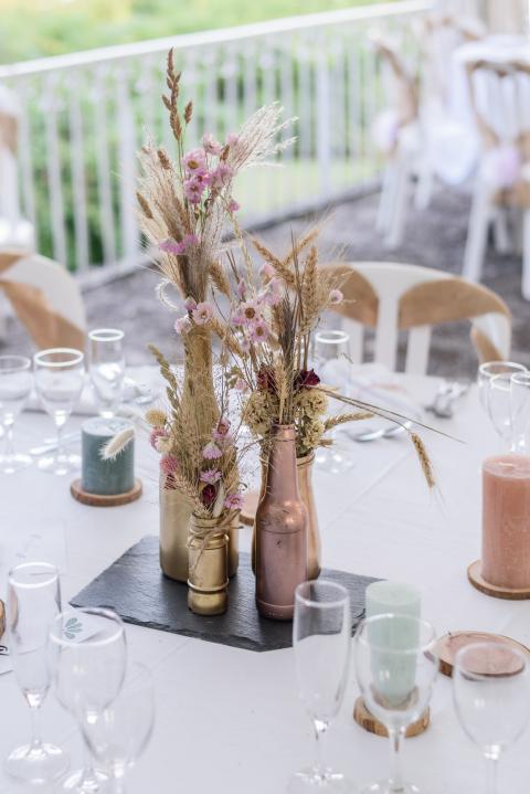 Des nuances de vert et de rose pour ce mariage samurois. Du bois et des fleurs séchées qui me rappelaient les herbes sauvages qu’on trouve en bordure de rivière.